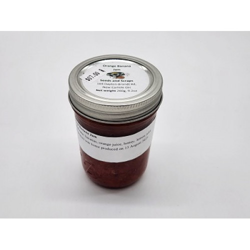 This honey sweetened orange banana jam is the perfect mix of banana and citrus. Available in 4 and 8oz jar sizes.
