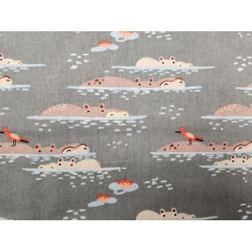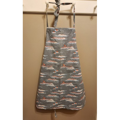 This kitchen apron has hippos swimming and being silly in the water all over it. The apron is 100% cotton and a single layer to help keep you cool in the kitchen and it has two pockets to help you keep track of important things while cooking.